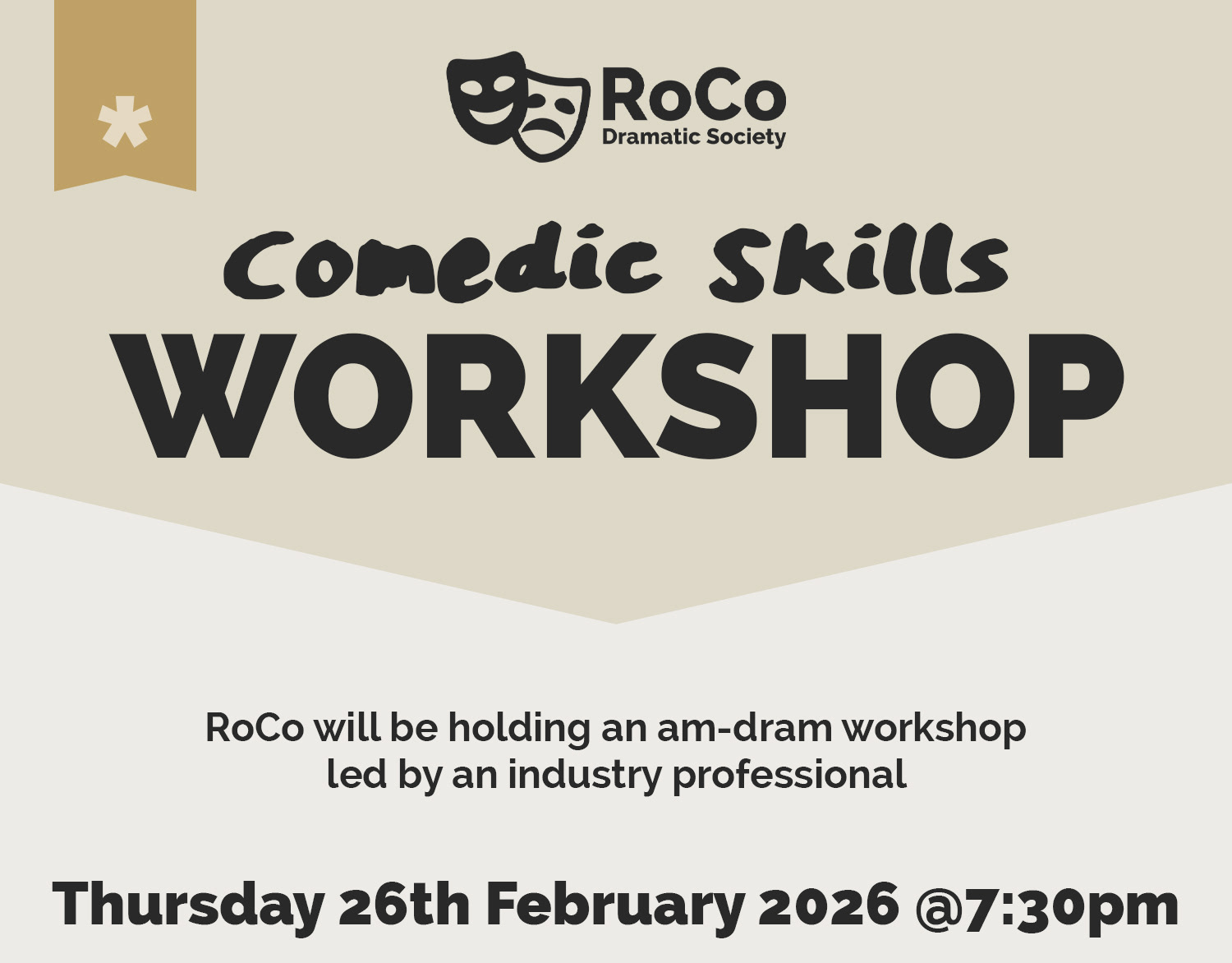 RoCo are holding an am-dram Workshop focused on developing comedic acting skills.