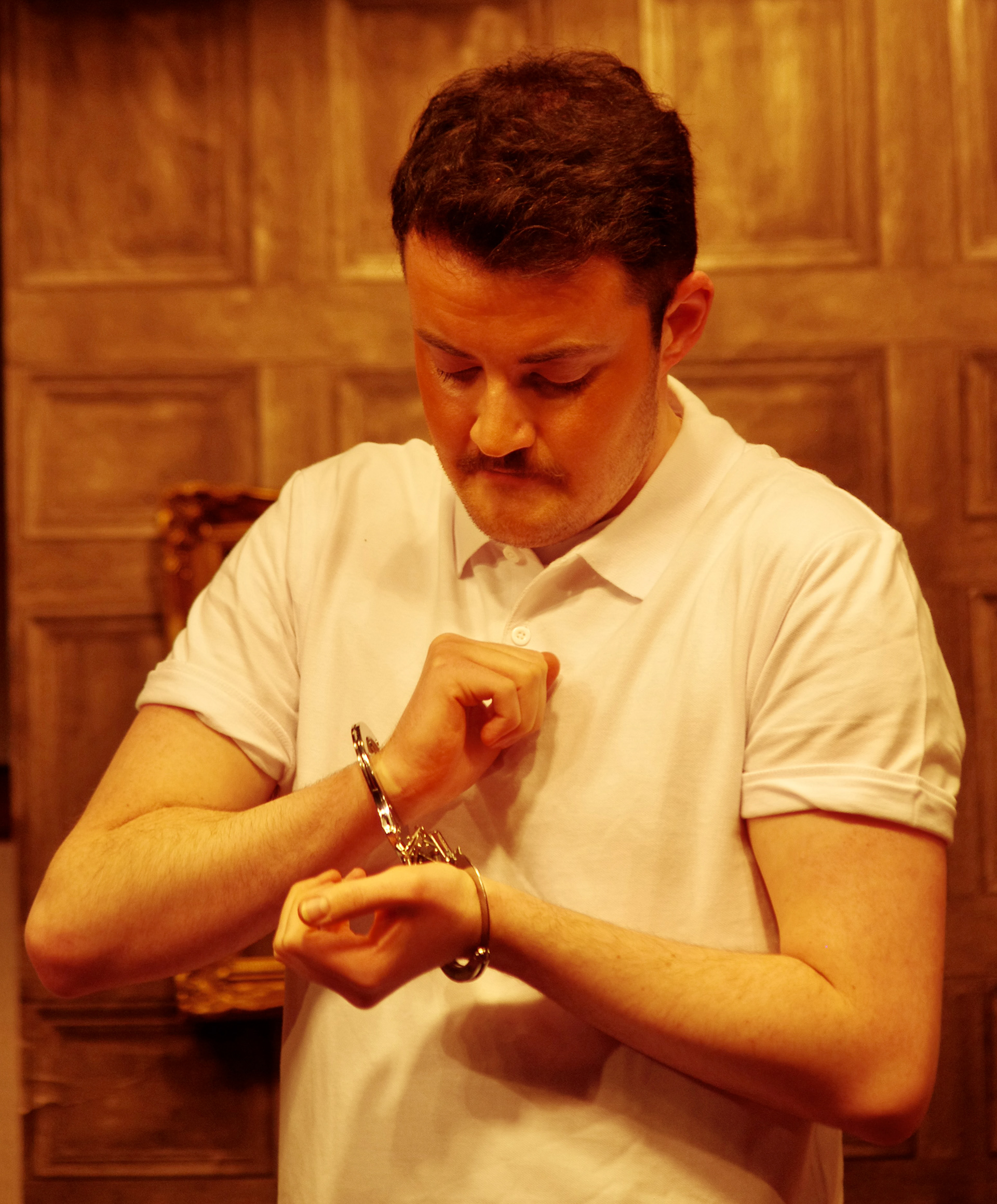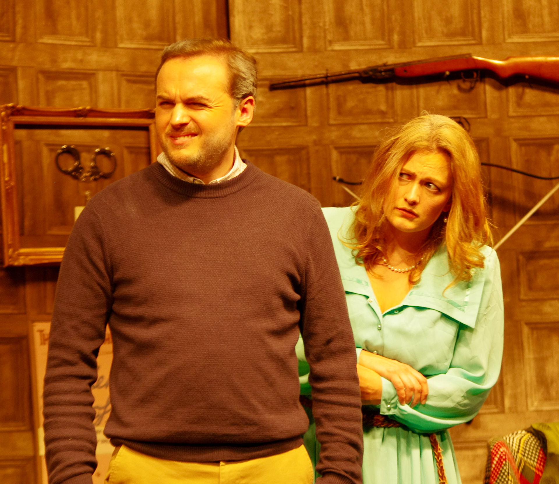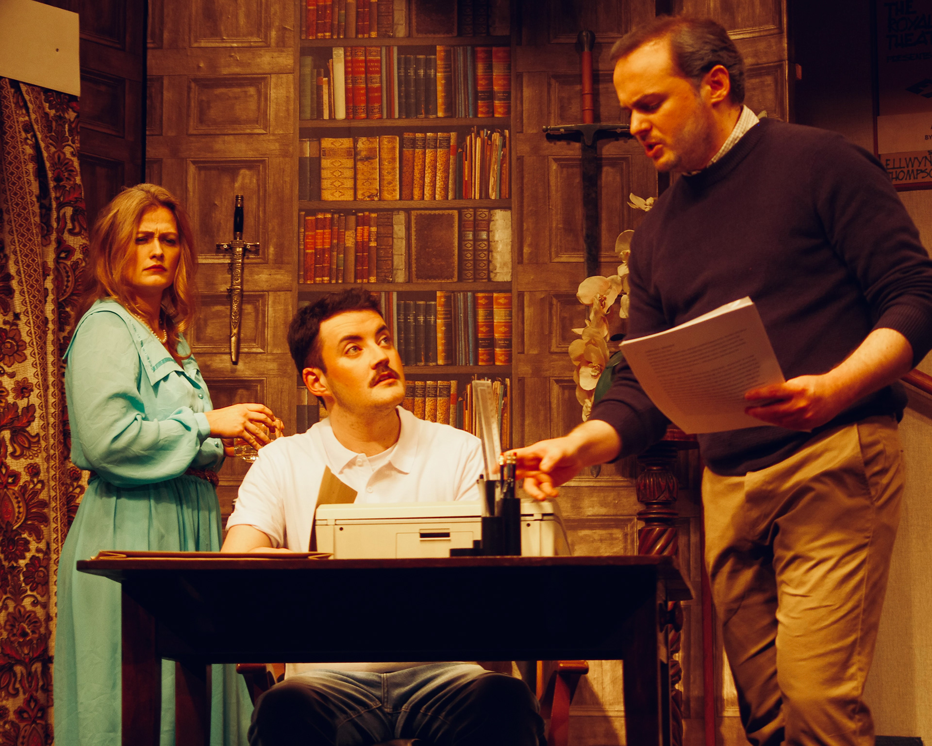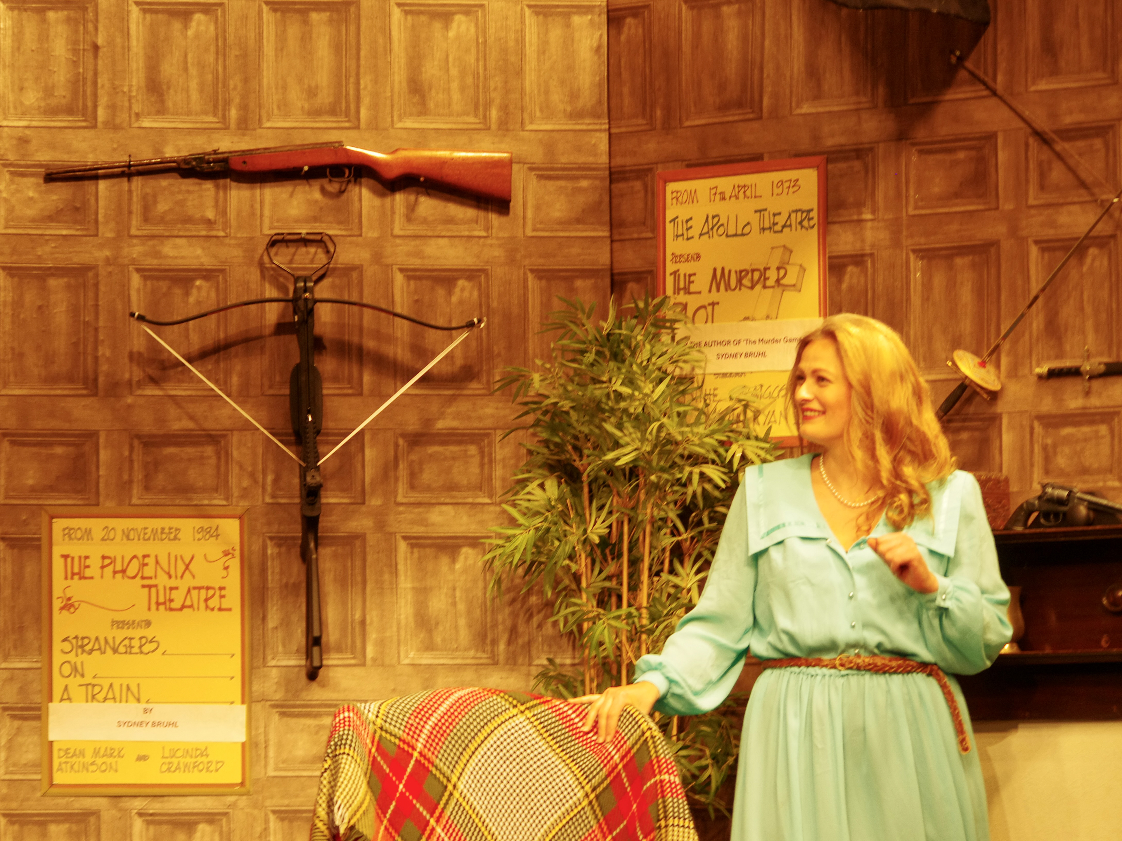 For our production, the play was relocated to the UK, with the action taking place in Sidney Bruhl's study, a handsomely converted stable in the Bruhl home on the outskirts of York.