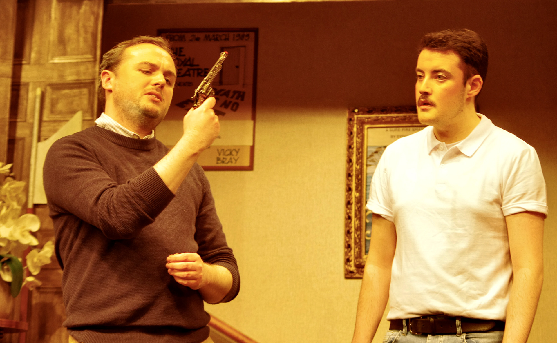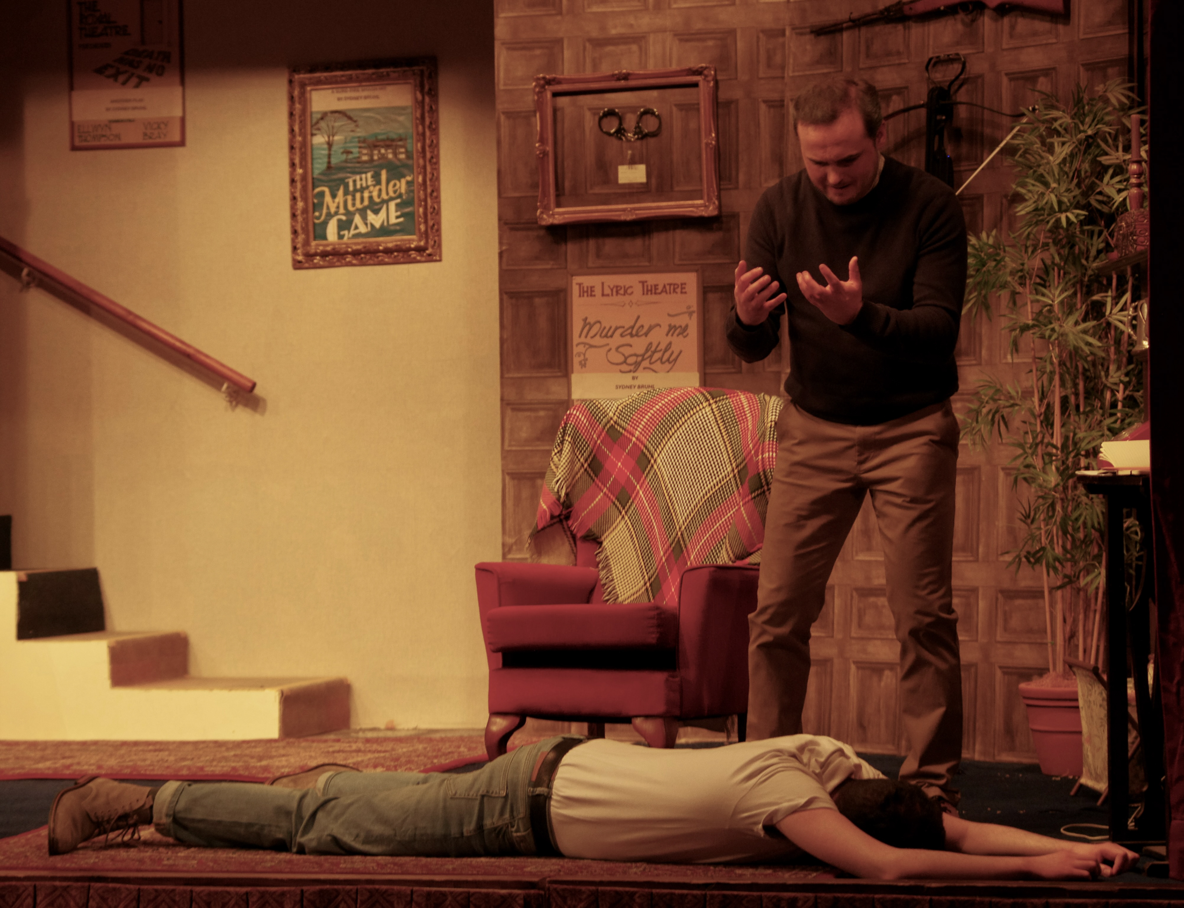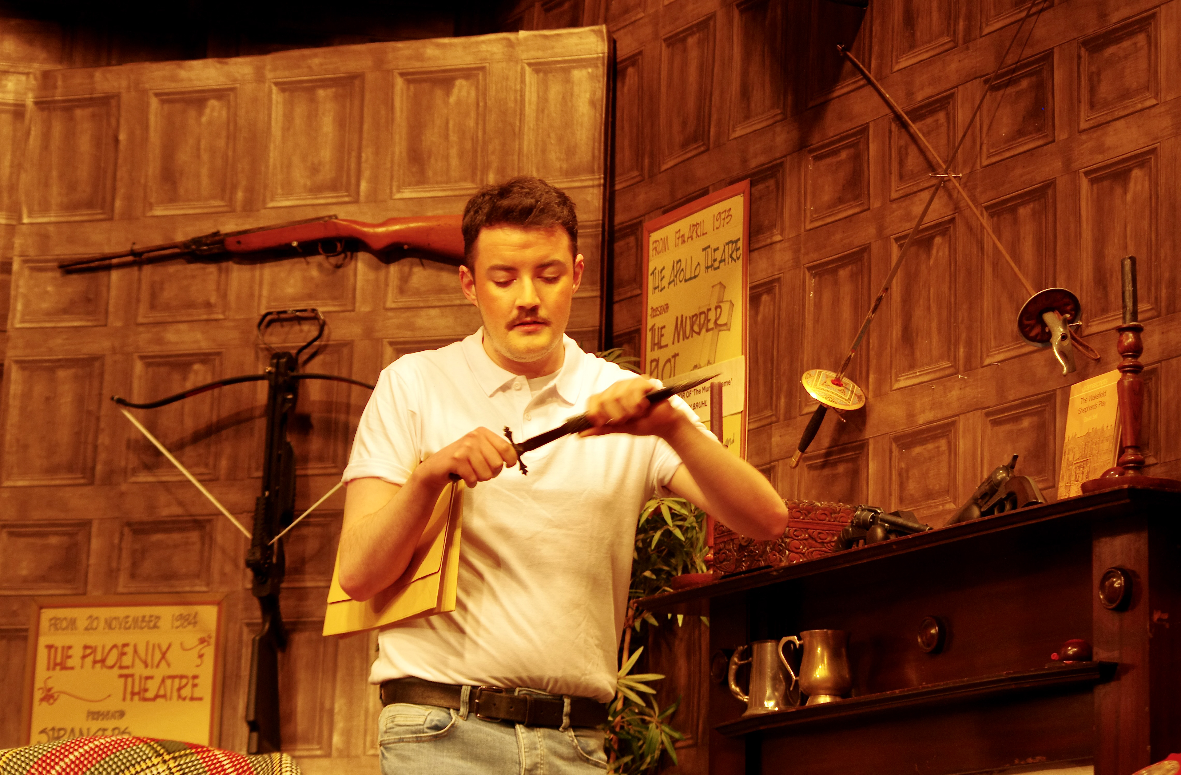 Here is a selection of photos taken during the rehearsals of Deathtrap, along with a selection of the publicity artwork produced for the production.